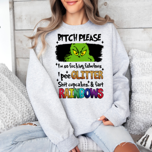 Add a touch of fun and sparkle to your wardrobe with our "I'm so Fabulous" graphic hoodie/crew! Featuring a playful "I pee glitter" graphic, this cozy fleece hoodie/crew is perfect for any occasion. Elevate your style and make a statement with our unique design.