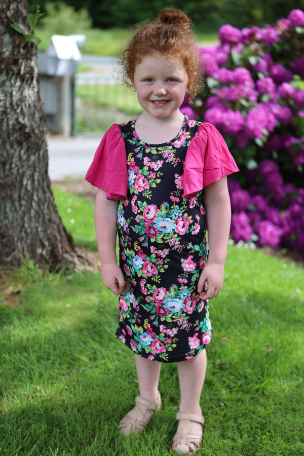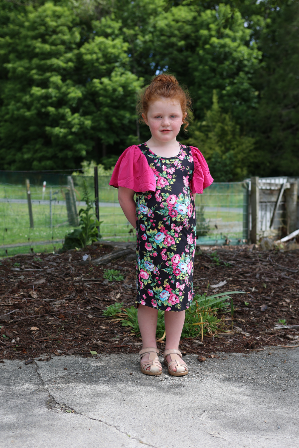 The Stella Dress from Emily Rose Designs is a comfortable, semi-fitted dress with a beautiful floral body with front pockets. With stunning floaty chiffon sleeves.