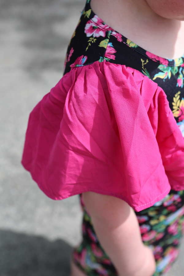 Made from 95% polyester and 5% spandex. Our model4 years old and wearing a size 5-6.