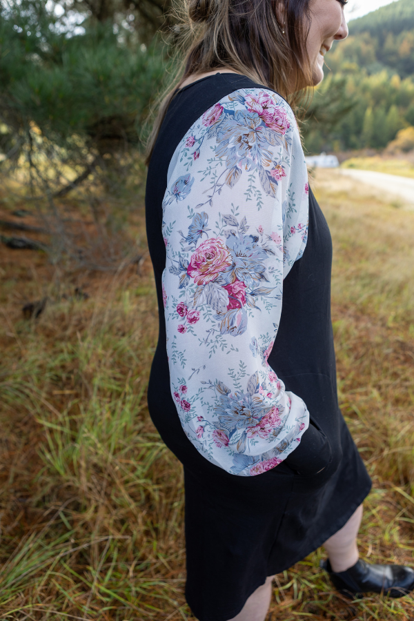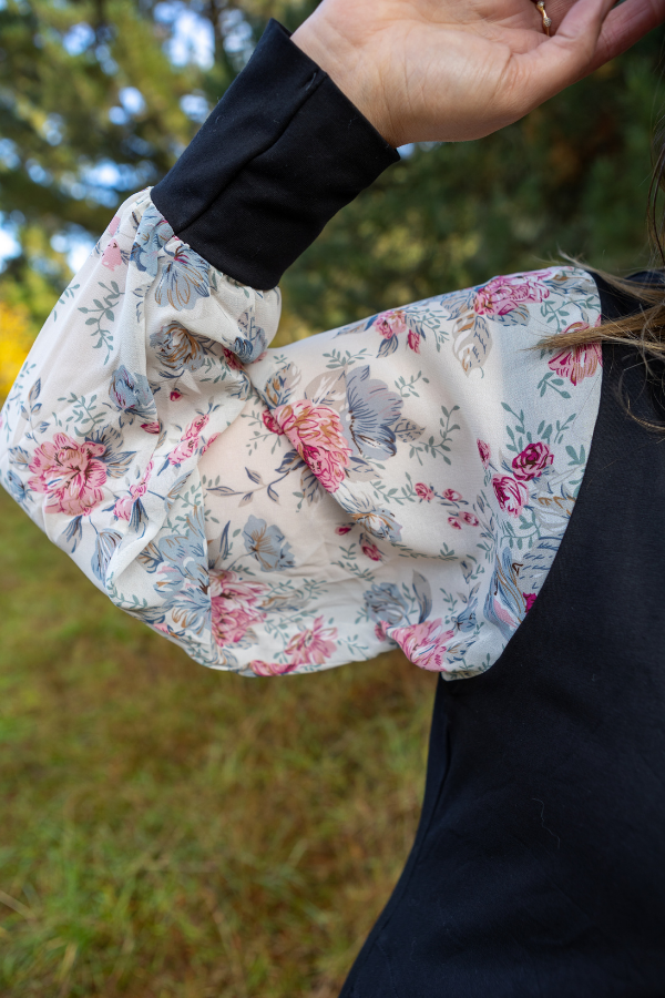 * Floaty Chiffon Wide sleeves with a Black cuff.